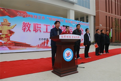 本网讯(通讯员:黄亚林)11月10日上午,枝江市教育局、枝江市总工会“引领新时代 焕发新气象 展现新作为”教职工排球运动会在职教中心开幕。市教育局在家班子成员出席了开幕仪式。