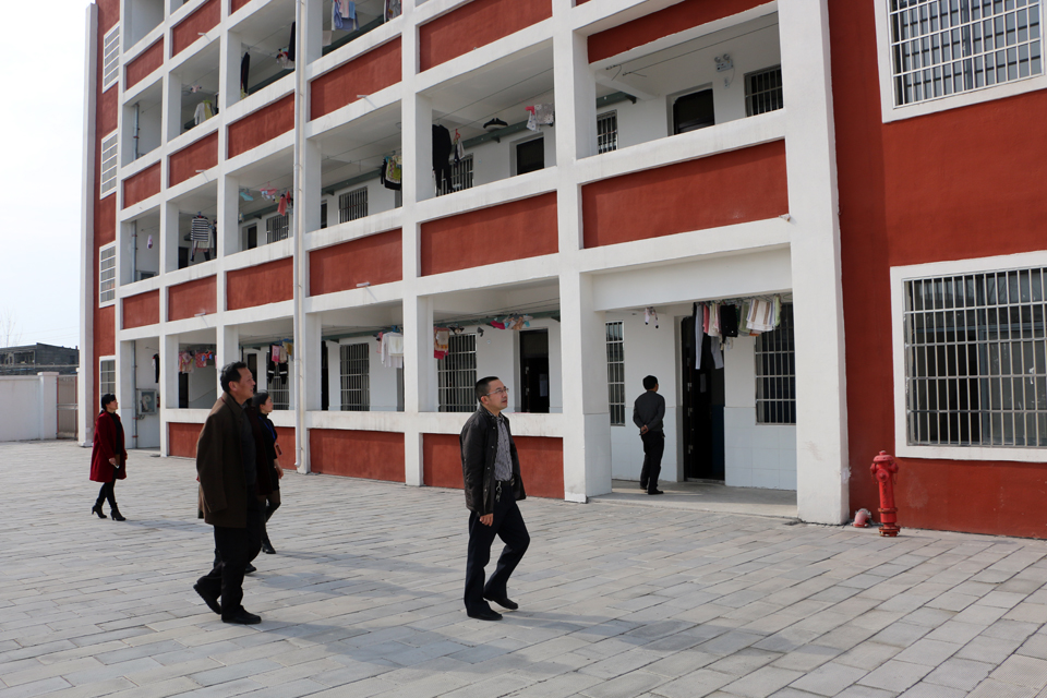 陈局长、刘局长首先仔细询问了学校基建情况,考察了学校新教学楼和教学楼前后空地,听取了学校对教学楼前后广场的设计思路,针对广场所用材料类型给出了具体建议。随后陈局长和刘局长前往会议室仔细查看设计图纸,对教学楼排水沟、广场大小等问题进行了进一步的了解和探讨。最后陈局长和刘局长检查了去年暑假已经完成的宿舍楼抗震加固工程情况。