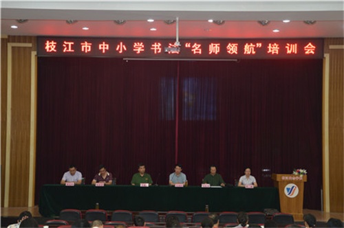 本网讯(通讯员:董胜强)6月2日,枝江市中小学书法“名师领航”培训会在枝江英杰学校举行。活动由中国书法家协会会员、枝江市美术书法教研员孙延辉老师主持。参加活动的还有宜昌市教育科学院副院长、宜昌市小学书法语文教研员李德强老师,中国书法家协会会员、湖北省书法特级教师陈晓勇老师,枝江市教研室主任、湖北省书法教育专业委员会副理事长王润红老师,枝江英杰小学校长李敏老师等,整个活动吸引了近百位书法同仁积极参与。