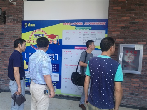 本网讯(通讯员:黄亚林)8月18日,市教育局联合市广播电视台,到青葵教育、小桔灯教育等培训机构,开展了民办教育培训机构补习和在职中小学教师有偿补课明察暗访活动。